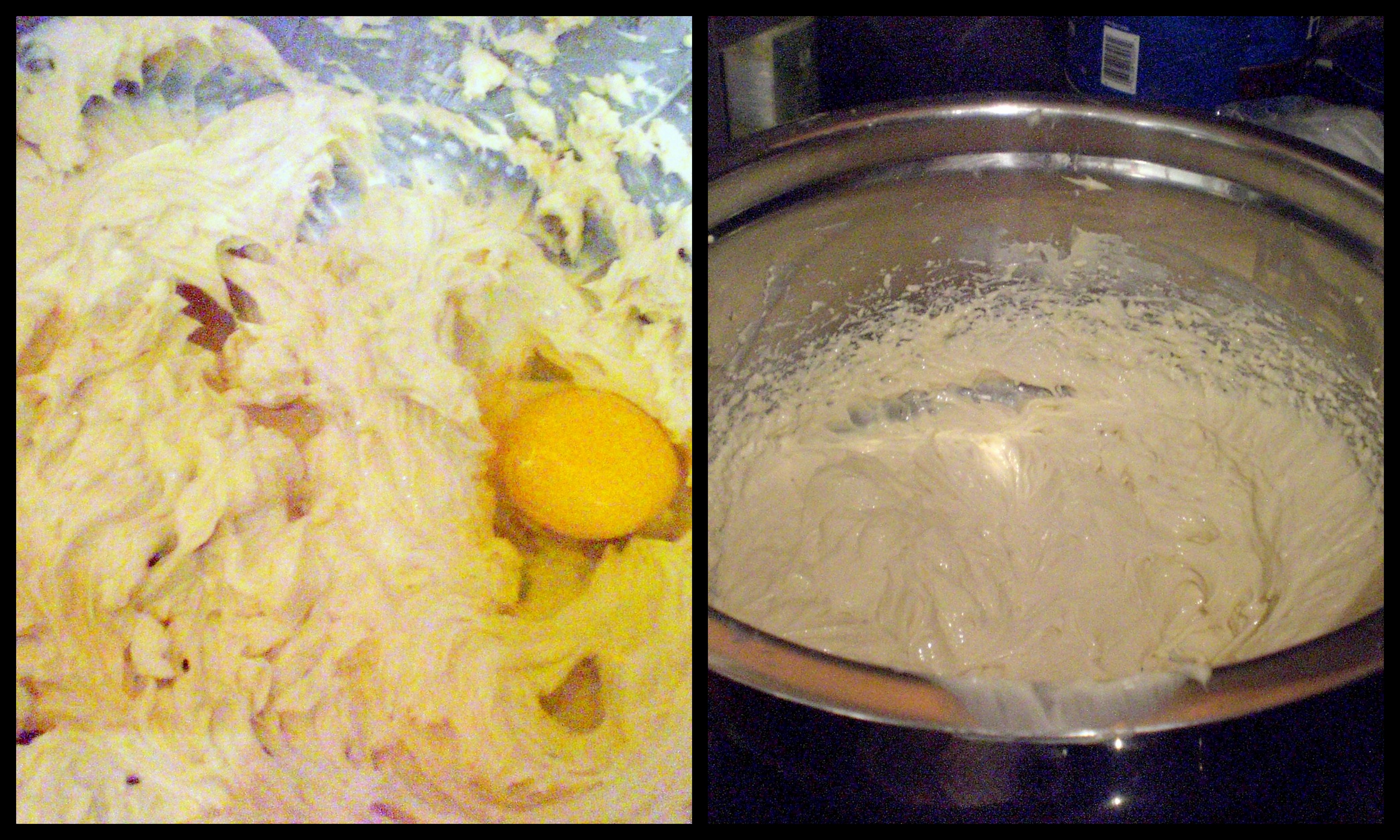 While you’re participating in that sort of unhealthy violence, get a friend like Joy to help by whipping cream cheese, sugar and vanilla together. Have said friend follow up by whipping eggs into the creamy goodness one egg at a time until it looks satiny smooth.