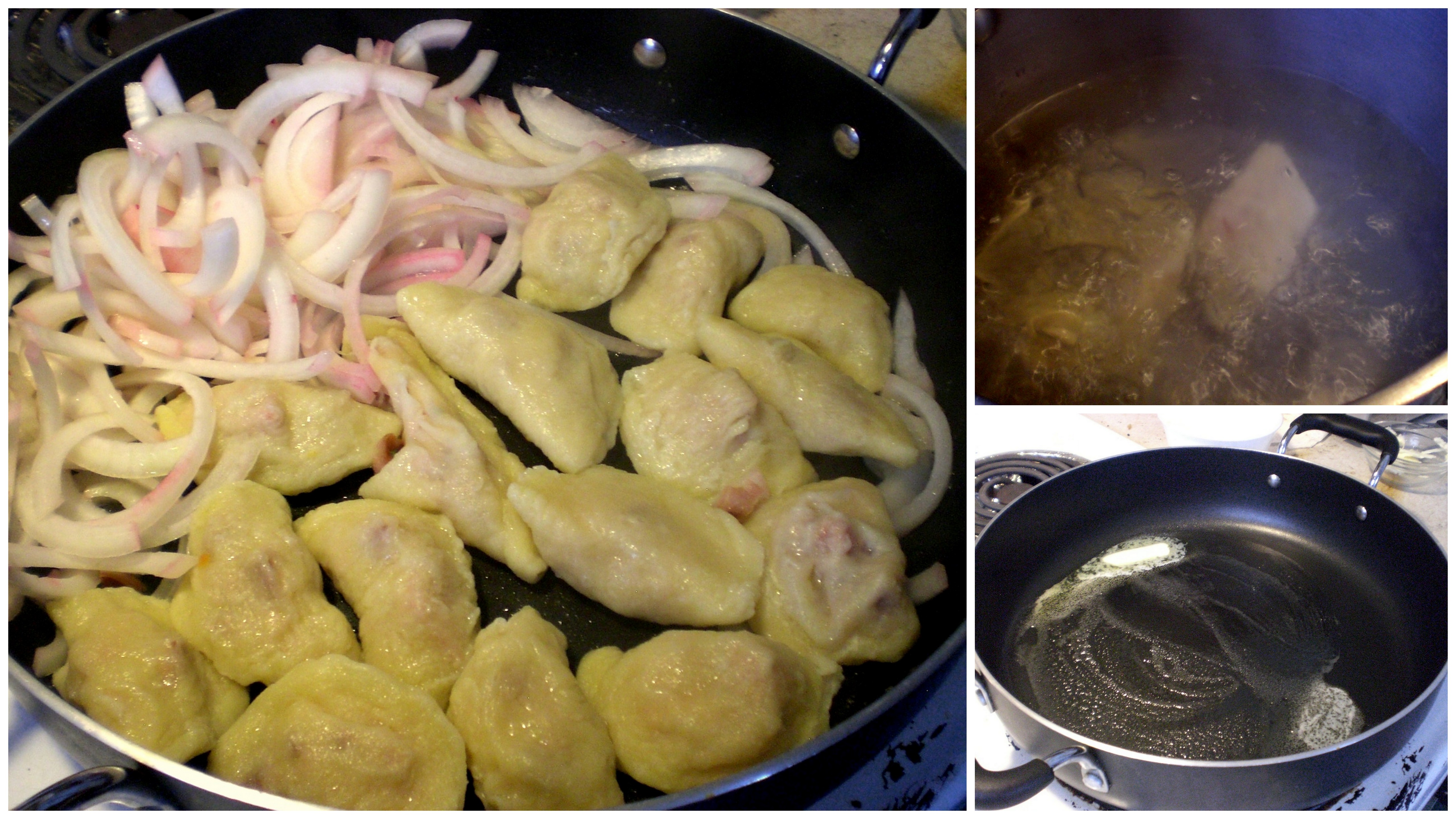 - Pierogies (варе́ники or varenyky; we cut this recipe in half and used mashed potatoes and sausage as the stuffing)