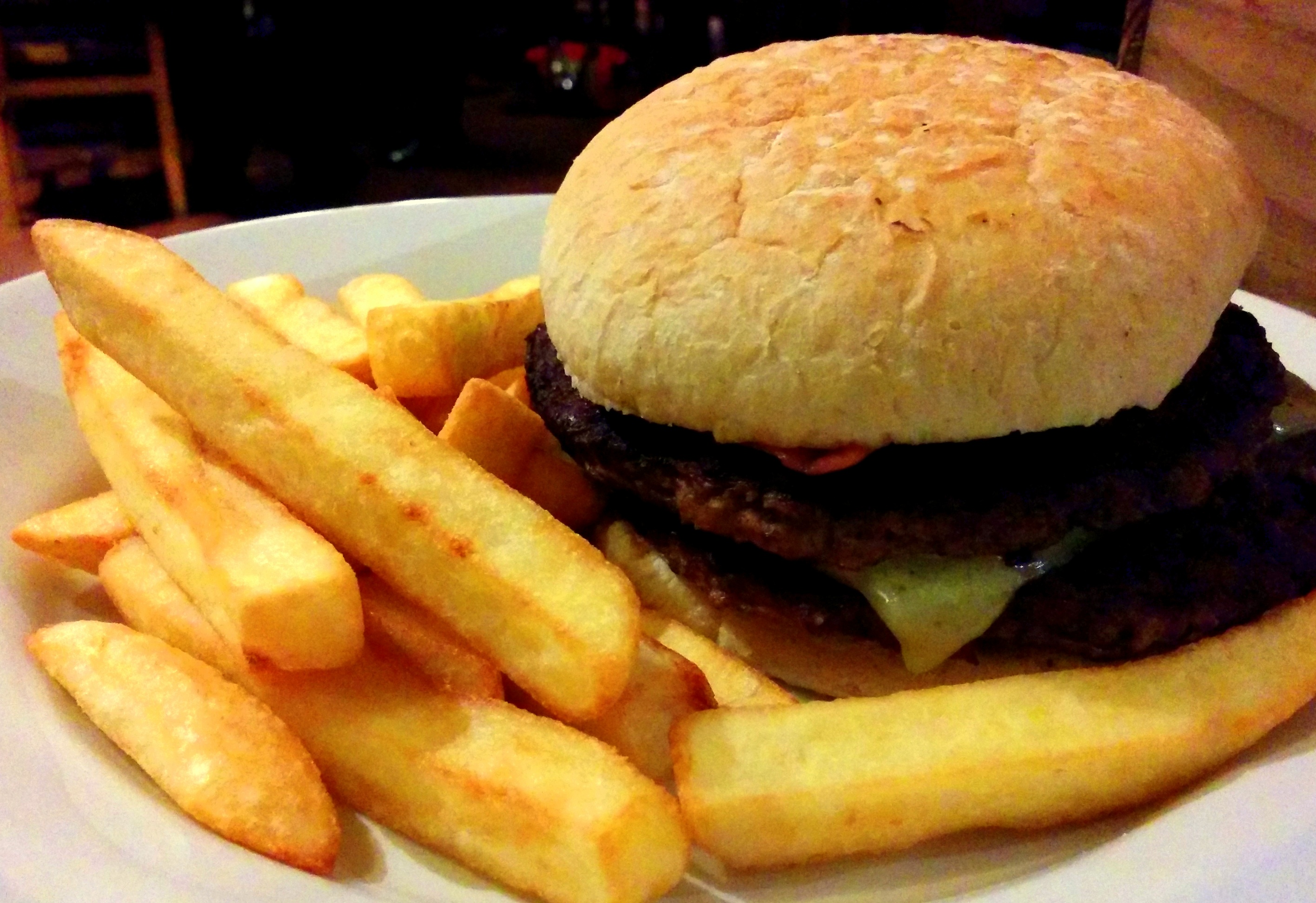 Of course, I have to mention the typical pub meal: the beer and burger. In fact, the White Horse has a beer and burger deal, allowing you to purchase a refreshing beer alongside your tasty burger for only 50p more than the price of the entree. The burgers here are decent, too: two thick-cut patties, two rashers of bacon, melted cheese, tomatoes and lettuce ensure your hands, mouth and tummy (in that particular order) are kept very full.
