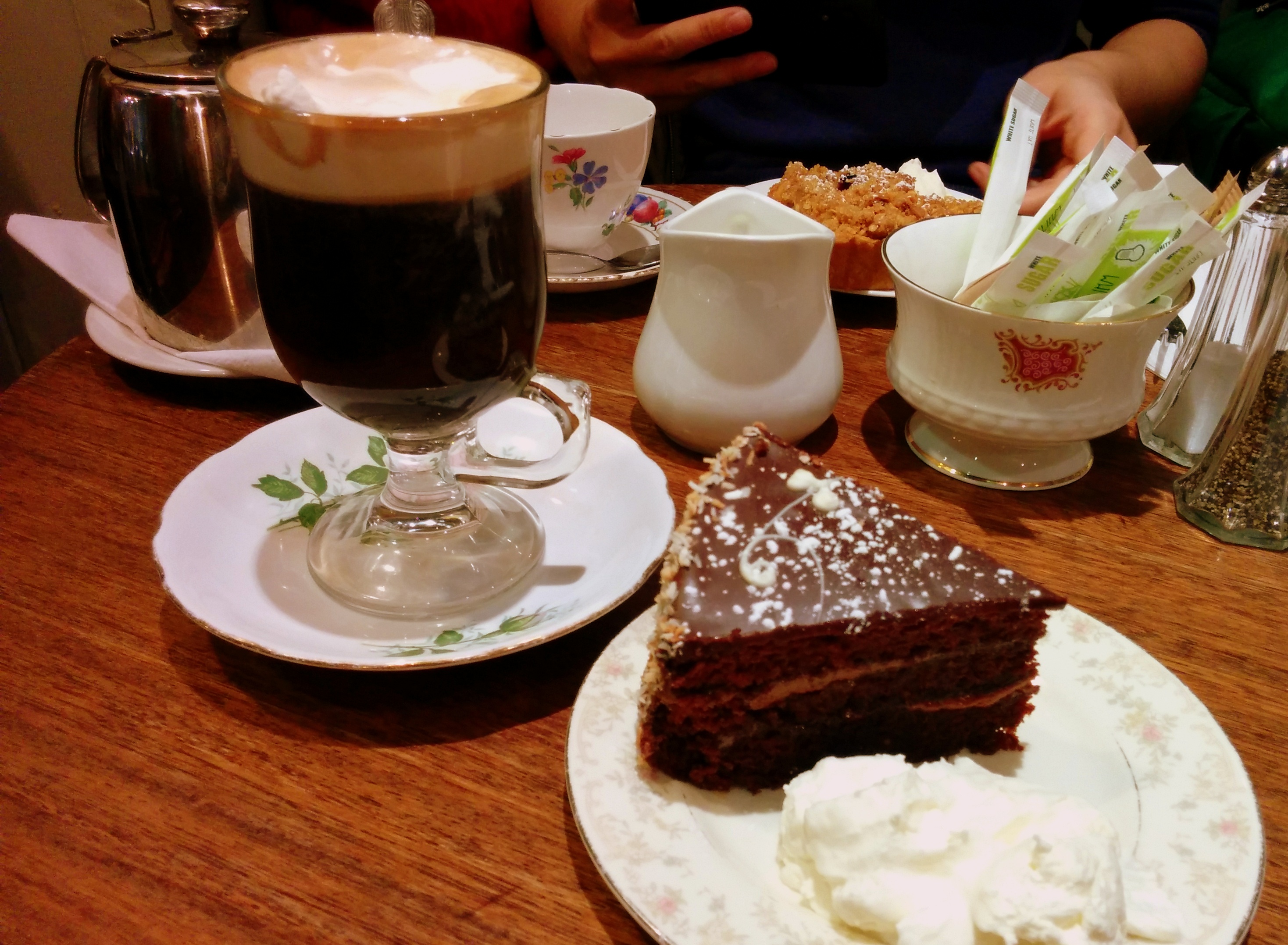 Pros: I can’t say enough how lovely the atmosphere was or how delicious the sweet treats were. The Irish coffee was done well and we were both so pleased with our desserts.