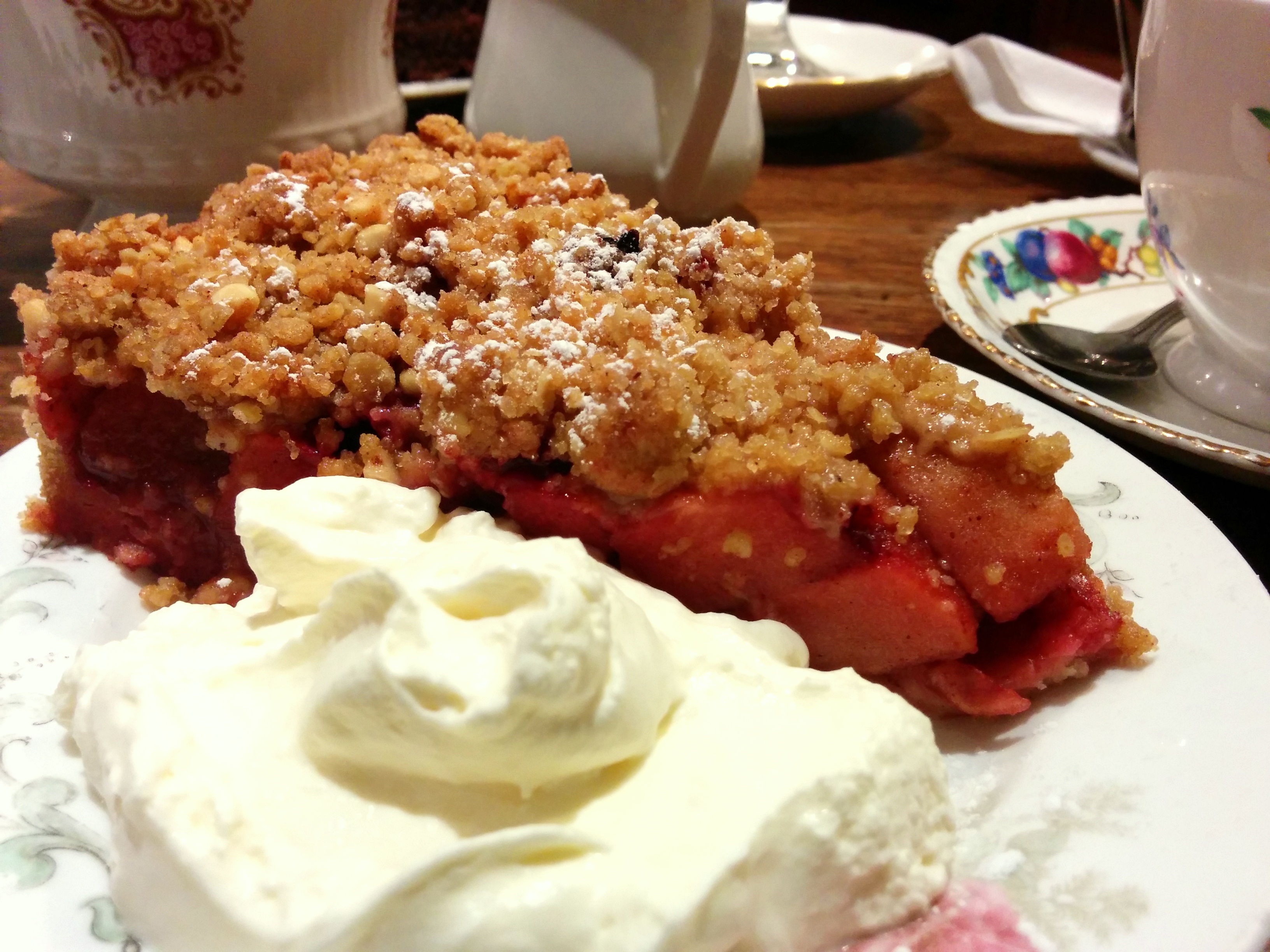 I ordered the hot blackberry and apple crumble (€4.95) alongside a pot of Earl Grey tea (€2.10) and my oh my was it delicious. The portion was massive but not overly sweet, the apples avoided being mushy and the blackberries added the sour tang necessary to keep the whole treat continually interesting, not just sweet.