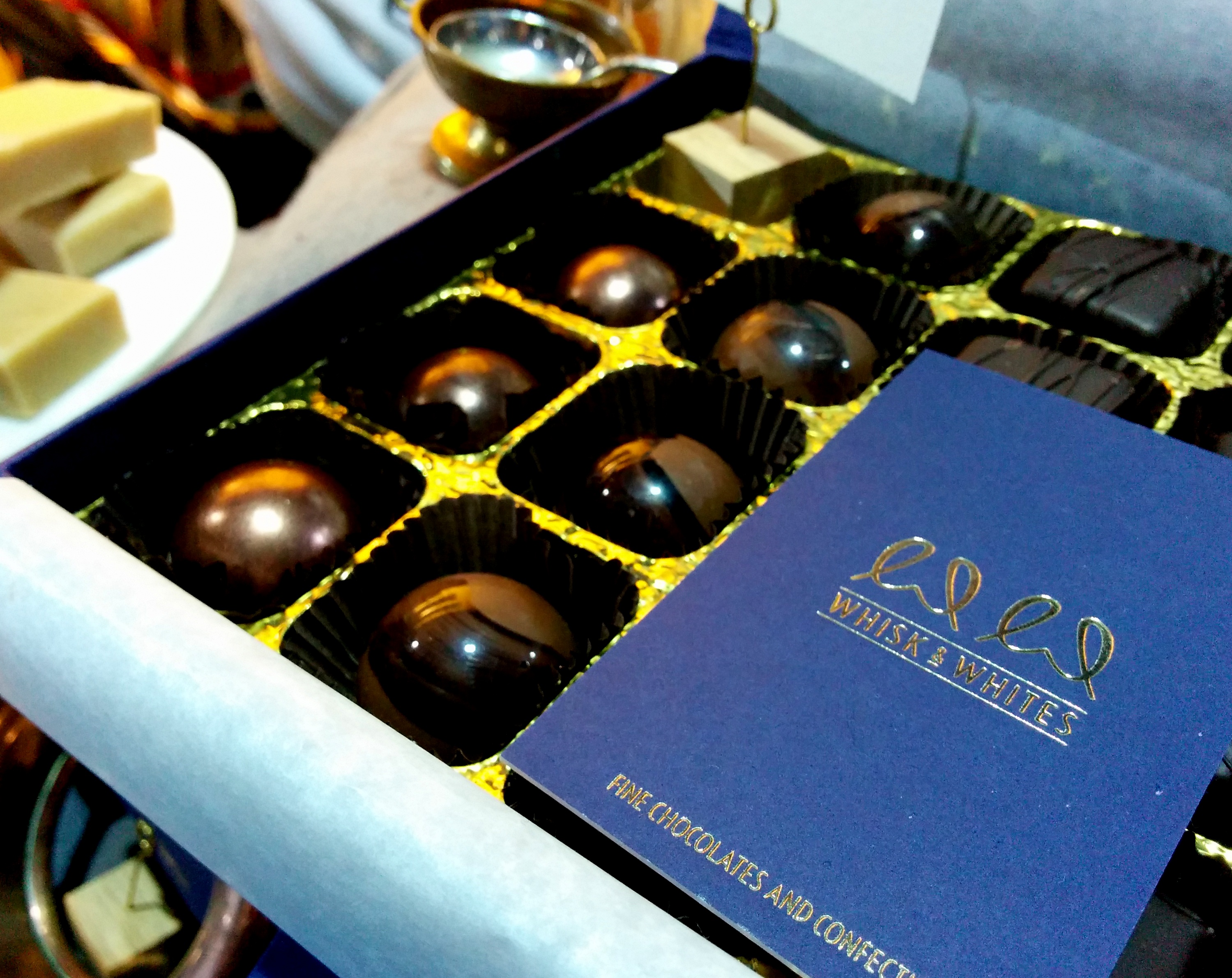 Meet Marc. Marc makes the chocolate you see in the picture and was trained by the former head pastry chef at Claridges. He was cheerful, friendly and encouraged us to sample bits of featherweight fudge and stunning marbled chocolates. Oh yeah, he’s also seriously talented – have you ever seen chocolates that literally shine?