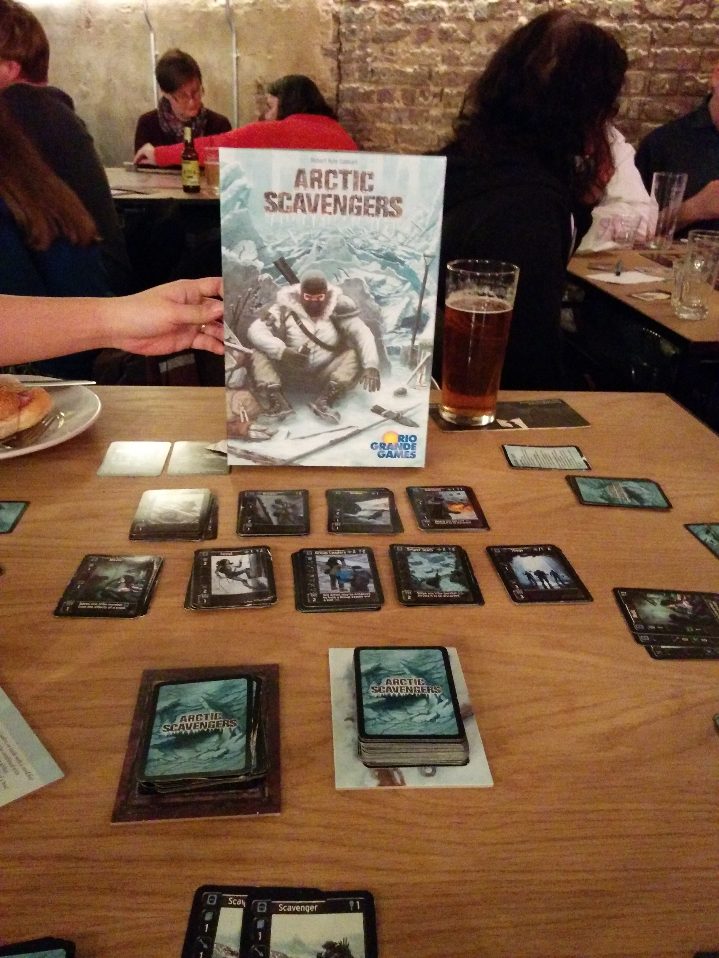 Arctic Scavengers was one of the first games to come out after Dominion started the deckbuilding genre of games. Thematically, the game is quite well done and has you leading a tribe trying to scavenge for resources and beat out the other tribes for survival. The game does a good job of giving you different choices throughout the game and has a neat bluffing mechanic in each round where you’re using remaining cards in hand to win a (potentially) useful survivor or piece of equipment to your tribe.